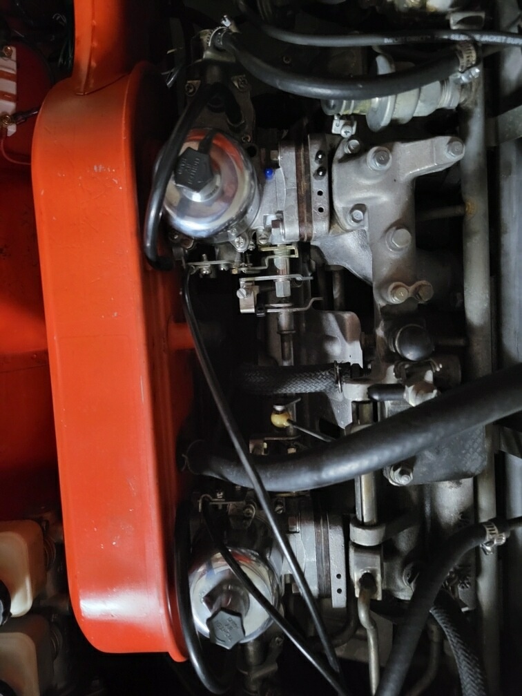 Started up without using the choke. Just had to up the idle a bit and balance them. Set the mixture knobs at 2 1/2 turns down and told George to drive it a bit and then bring it by so we can check the plugs. He called today to say it seems to run with more power and doesn't hesitate like it used to. :D