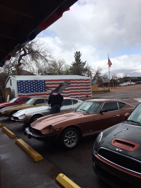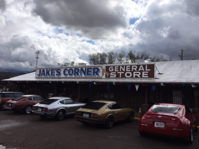 Well, not surprisingly given the weather report, we had a lot of cancellations. There were, however, 7 hearty souls, in 5 cars, that decided not to let rain, snow and frigid weather detour them. We had a good time despite the weather and everyone and their cars got back on one piece. Thanks for coming out guys! The parking lot photo is the departure spot in Fountain Hills. The two photos in front of the store was at Jake's Corner (note the snow covered hills in the background), and the driver POV shot was on the road along side Roosevelt Lake.