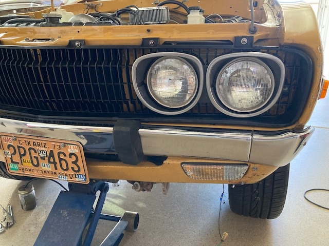 Test fitted the driver's fender, grille and bumper today. It's finally beginning to look like a truck again. With Ron's help we were able to bleed the clutch master, slave cylinder, and shift through all the gears with the engine running and the back end off the ground. Everything seems to be working so far. Even discovered in the process that the fuel sending unit and gauge are talking to each other. Tomorrow I'll be running out to Birdman's house to hopefully retrieve some necessary rear brake parts. The only thing at this point preventing a brief trip down the street is functioning brakes.