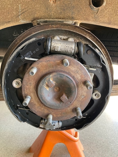 Thanks to Birdman for the donation from his 620 pickup trailer yesterday and his help removing them. I was able to gather all the brake hardware I needed and shoot photo reference for rebuilding my rear brakes. Today, I got all the parts cleaned and installed (with new drums), though it was like a Chinese jigsaw puzzle. I learned a lot in the process. All four of the long springs for doing both front and rear drum brakes have different part numbers. The front ones are still available, but the rears are unobtanium, unless you're fortunate enough to find used ones. The front springs have the "s" bend at the end, while the rear springs are hooked. There's no way to substitute one for the other on a 620. The copper colored shims for retaining the brake adjusters are still available but the brake adjusters themselves are not.