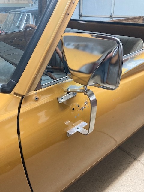 I spent today fabricating outside mirrors for the truck. The plastic ones that came on the truck were trashed and so were the brackets. It's clear from all the holes in both doors that the truck had a series of mirrors on it over the years. I didn't want to drill any more holes, preferring to use the holes I had and fabricating brackets to match. I found the new steel mirrors themselves on Amazon. Finished installing one today and will do the passenger side tomorrow.