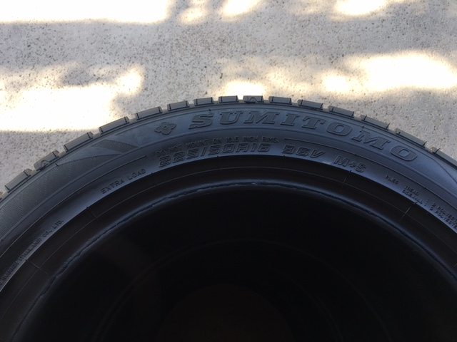 I have a really nice set of 4 Sumitomo tires, sized 225/50/16, for sale. I got them with a set of wheels I just bought for my Mercedes. The tread on them is evenly worn and still at 90+%. New they were $380. I'm asking $175. Date codes are 2017, but they look brand new, so they must have been stored inside.