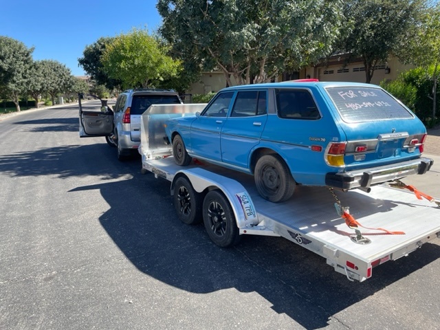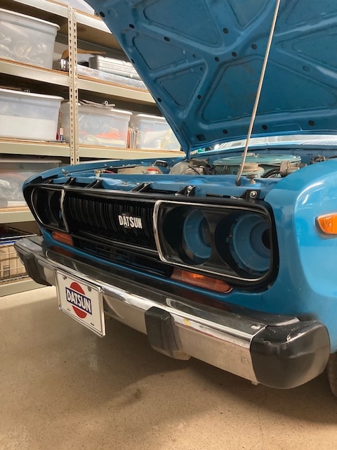 Just beginning to assess what I bought. 710 has a new (3/2022) battery and factory AC. Interior needs a lot of work but engine compartment looks totally original including the carb and all the emission equipment. Today I ordered the correct NGK plugs, a glass gas filter, four new headlights to replace the ugly modern HID's whose wires had been chewed through by some critter, and 5 feet of fuel hose, to replumb the system. If everything comes in this week I'll attempt to fire the engine. Two years ago the previous owner drove the car to Phoenix from Ashfork, AZ, about 4 hours away. Knowing that, this should be a relatively easy resurrection. Stay tuned.