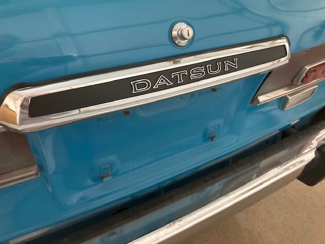 Oh my gosh. I must have vacuumed up 300 or more acorns already. They were everywhere. Was hoping there were enough acorns to distract the critters from the wiring but I'm already finding munched wiring, Arghhhhh! Today, I did a bit of repair on the front grille, refinished the "DATSUN" trim on the tailgate and continued cleaning in the engine bay. As you can tell from the pictures the interior is going to be a lot of work.