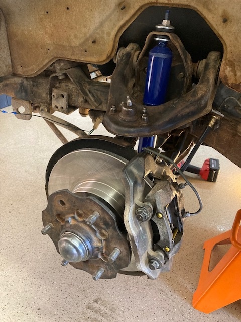 Got new front brake pads and hardware installed today as well as my Lokar accelerator cable. Despite looking pretty nasty, I was able to get all the front brake lines loose without rounding the corners of the fittings. Still need to order and replace both front rotors. I know I did this backwards, but all the cleaning is now behind me and it will be really quick to swap out the rotors when they arrive. Been keeping track of all my expenses and at this point I'm still under $5,000, all in. Definitely a budget build.