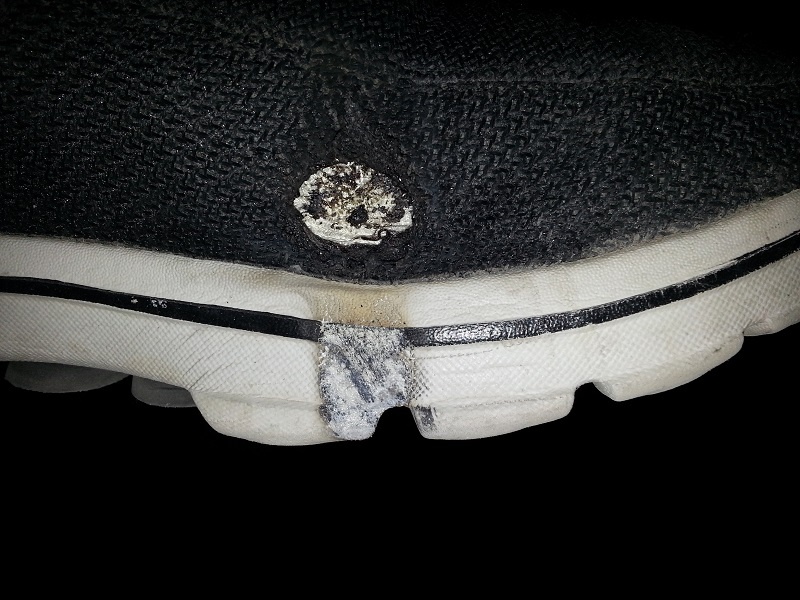 Was out in the garage puttering around, and decided to do a bit of welding. I had on gloves, helmet, and long sleeves, but decided that the old running shoes were ok (I was using the tig, no sparks you know).