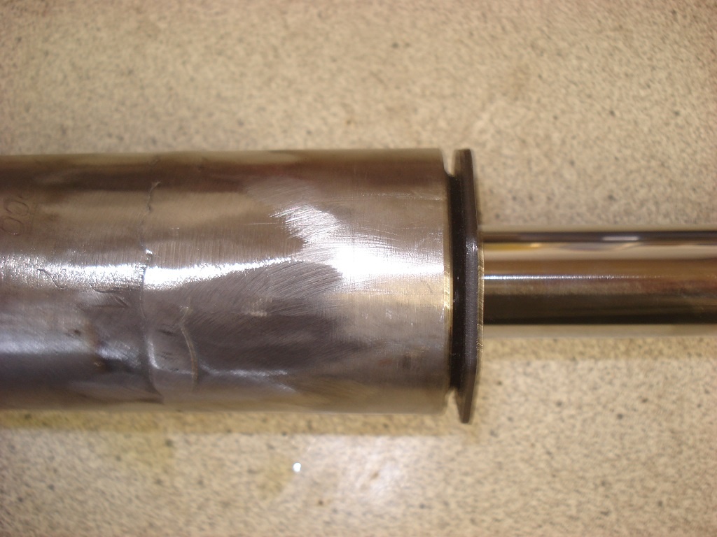Cut the front strut tubes and shortened by 3 3/8" to accommodate Koni Race shock inserts (these are 280zx struts). Struts were then welded and ground down enough to allow the coil over sleeves to slide over them.