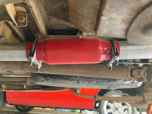 Yesterday I finished fabricating the exhaust system. I added a resonator with the Dynomax Turbo muffler I bought off Amazon. I expected the engine sound to be a little bit quieter, but I think for a truck it sounds great. I was able to dial in the tune fairly well. The engine idles smoothly at about 850 RPM and once warmed up and off choke it accelerates smoothly. Once I get it on the road I'll do some fine tuning. I discovered a small water leak where the thermostat housing bolts to the motor, so I'll need to take that off and re-seal it. Last night I noticed quite a bit of play in the steering so I tightened the steering box lash a bit and all the play is gone with no binding from making it too tight.