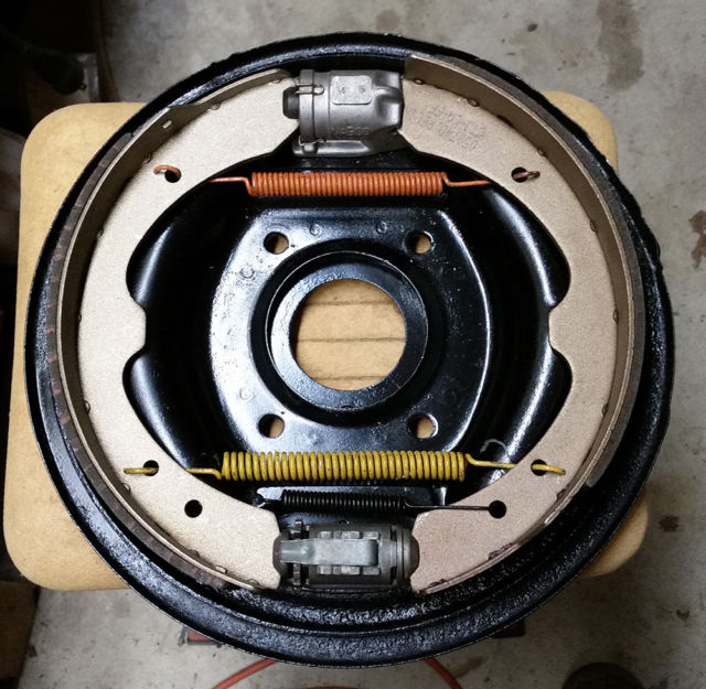 Carl, I'll double check the manuals Greg posted the link to. The Haynes manual says the longer and thinner of the two springs goes on top and the other one goes on the bottom, which is what my pictures showed (Haynes may be wrong though ). The real problem seems to be there are no holes in the shoes for the kind of springs I have. If the springs had a hook on the end I could probably use the triangular holes at the edge of the shoes, and they'd stay in place. Looks like there are two different versions of the two springs for the shoes. The version I have have an "S" shape on each end and that version goes into holes on the two shoes. The other spring version is what I need, the ones with a hook or a U on each end that would hook into the triangular cut outs on each shoe.
