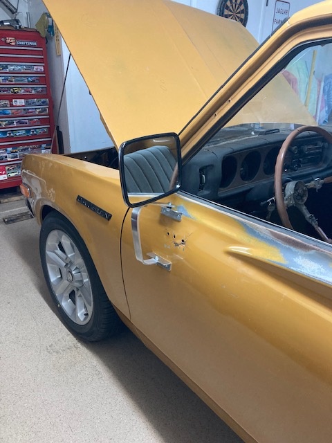 I spent today fabricating outside mirrors for the truck. The plastic ones that came on the truck were trashed and so were the brackets. It's clear from all the holes in both doors that the truck had a series of mirrors on it over the years. I didn't want to drill any more holes, preferring to use the holes I had and fabricating brackets to match. I found the new steel mirrors themselves on Amazon. Finished installing one today and will do the passenger side tomorrow.