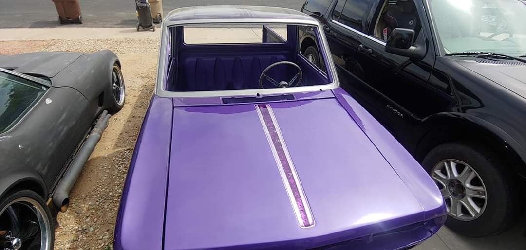 so went to see how my painter guy and his family are doing during this pandemic and they are doing good, with the hot temps over 100+ i don't expect him to bust his ass and over do it on my truck, but today he started working on the snug top shell by cutting out the roof section for the canvas rollback sliding ragtop and i got some lexan to use as side windows and he cut the sides for them to be installed as well. as soon as canopy is painted then its time to wrap the underside with crushed velvet material prior to installing lexan/ragtop. can't wait for it to be done.
