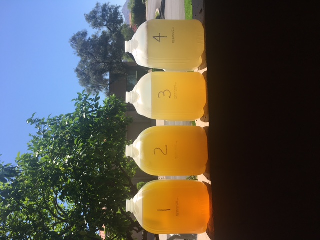 After four complete flushes, this is what the fluid looked like that came out. Though #4 wasn't perfectly clear, as you can see in the picture, I deemed it close enough, and proceeded to fill the system with a 50/50 mix of coolant and distilled water, topped off with the Rislone product. I'll let you know if I see a difference in engine temperature.