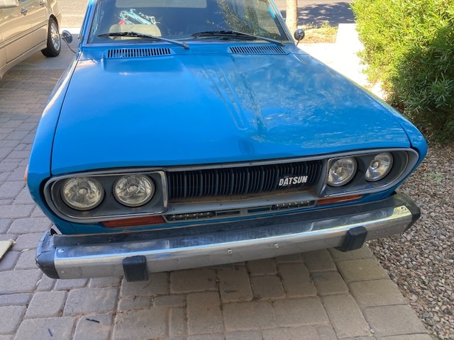 Just beginning to assess what I bought. 710 has a new (3/2022) battery and factory AC. Interior needs a lot of work but engine compartment looks totally original including the carb and all the emission equipment. Today I ordered the correct NGK plugs, a glass gas filter, four new headlights to replace the ugly modern HID's whose wires had been chewed through by some critter, and 5 feet of fuel hose, to replumb the system. If everything comes in this week I'll attempt to fire the engine. Two years ago the previous owner drove the car to Phoenix from Ashfork, AZ, about 4 hours away. Knowing that, this should be a relatively easy resurrection. Stay tuned.
